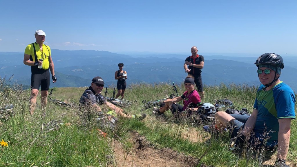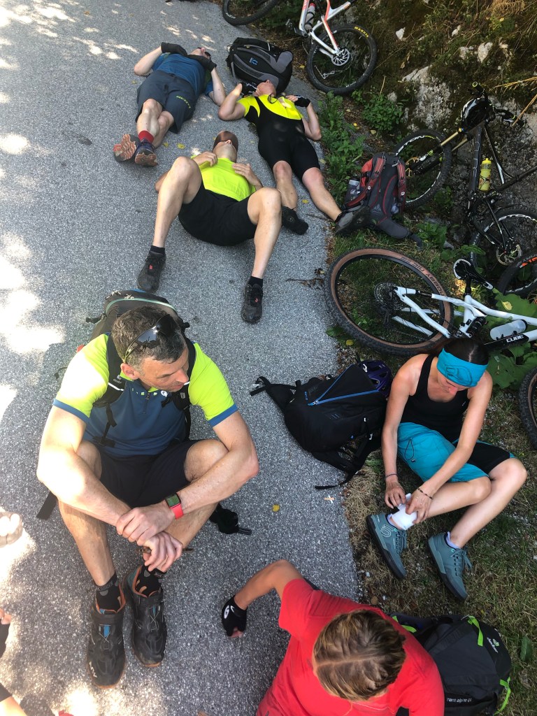 Als Hilfestellung dient das Bild unten – zudem ist das der Beweis, dass wir auch nach einer Woche intensiver MTB-Tour zu zwölft noch immer freiwillig den Tag gemeinsam verbringen 😂.
