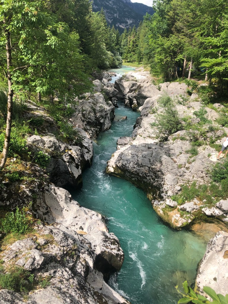 Gemeinsam geht es schließlich weiter entlang der türkisfarbenen Soca, an deren Ursprung wir vorbeigekommen sind. Auch hier gibt es unzählige Fotomotive, und es fällt schwer zu glauben, dass man bei den Bildern nicht mit einem Farbfilter nachgeholfen hat!