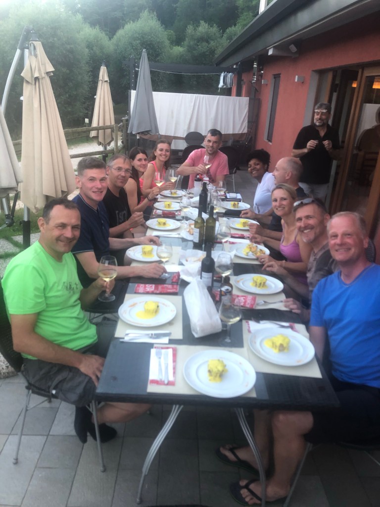 Abends finden wir noch ein Restaurant, das Platz für 12 Leute hat und wir lassen es uns richtig gut gehen (die Forelle von der Soca ist ein Traum!). Als Betthupferl noch einen Aperol Spritz bei angenehmen Temperaturen und dann fallen wir ins Bett.