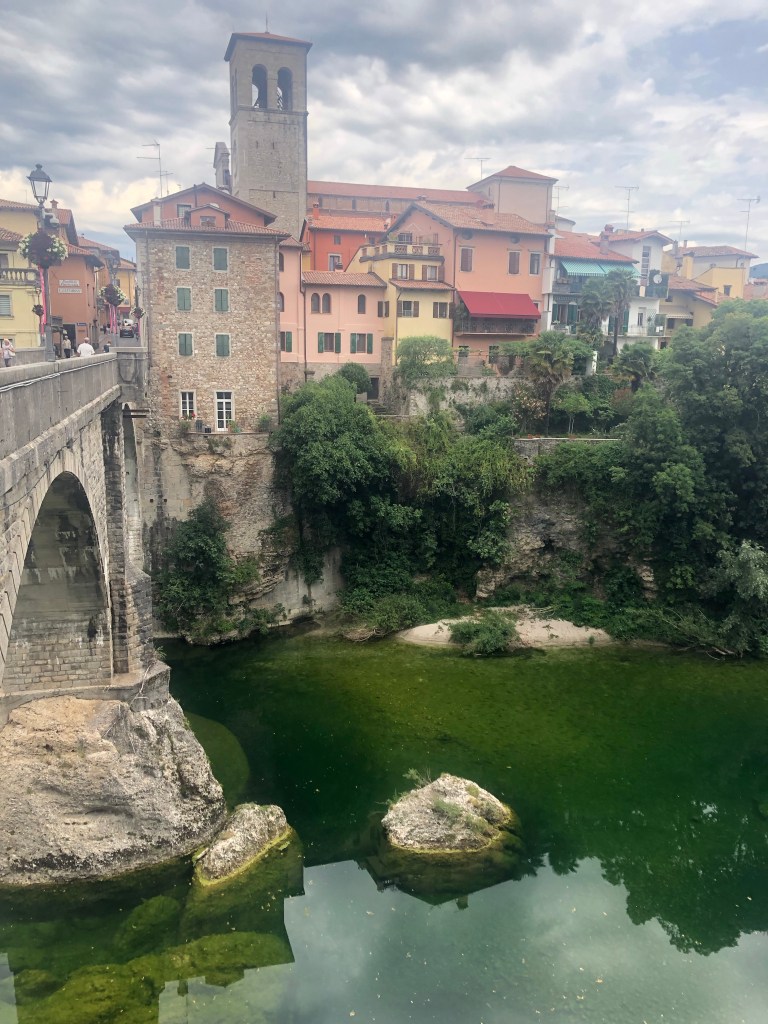 In Cividale trinken wir gemütlich einen Cappuccino, es tröpfelt ab und zu ein bisschen, aber vom richtigen Regen bleiben wir verschont.