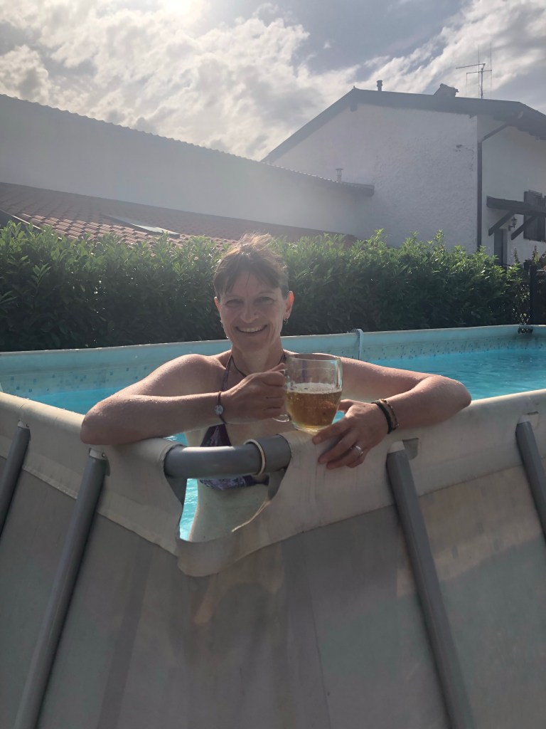 Nach kurzer Dusche geht es runter in den Garten, etwas Kühles trinken, in den Pool hüpfen und einfach nur entspannen.