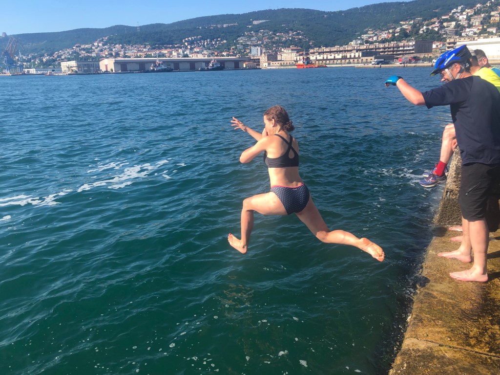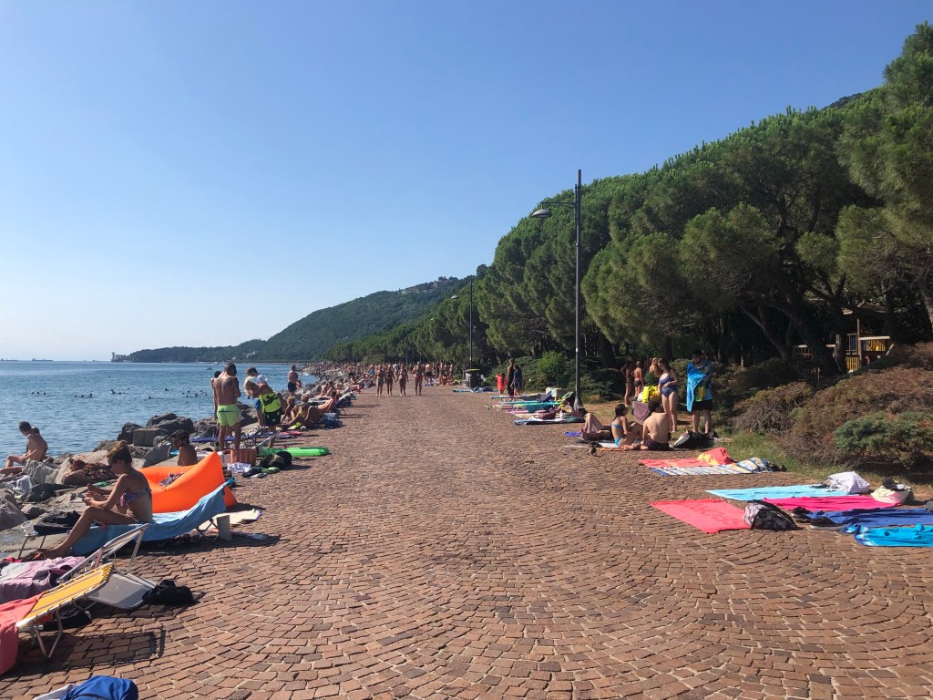 Unter den Pinien lässt es sich aushalten und das Wasser ist genial. Ich hätte nie gedacht, dass man in der Nähe von Triest so toll baden kann.
