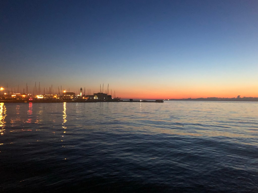 Nach Sonnenuntergang spazieren wir zur Mole.