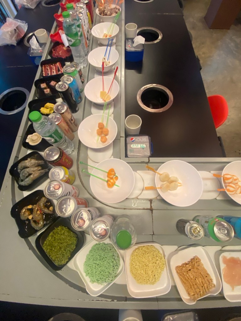Auf dem Weg machen wir noch Halt in einem typischen kleinen Lokal (mit wenig Charme, aber einer professionell ausgestatteten Küche, die man auf einem Bildschirm sieht, und wo man auch der Köchin bei ihrer Arbeit zusehen kann). Auch hier hilft es, wenn man ein wenig die Sprache beherrscht, so dass man bekommt, was man möchte, ohne nur auf ein Foto zeigen zu können 🤣. Wir essen je einen großen Teller Suppe, natürlich mit Stäbchen, was nicht immer einfach ist, wenn man die langen Nudeln erst einmal entwirren muss. Die Suppe tut gut!