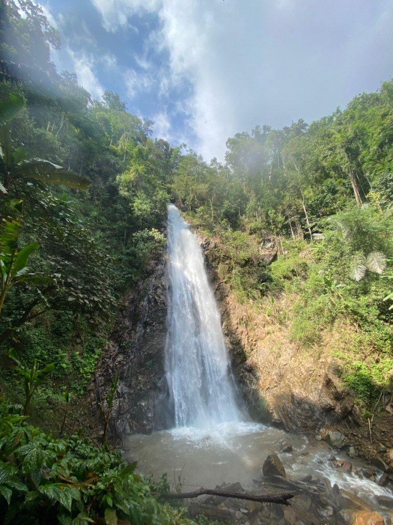 Um zum Wasserfall zu gelangen, läuft man 1,4 Kilometer ab dem Parkplatz. Auf dem Weg bestaunen wir die überdimensionalen Pflanzen, allen voran die Bambusstauden.