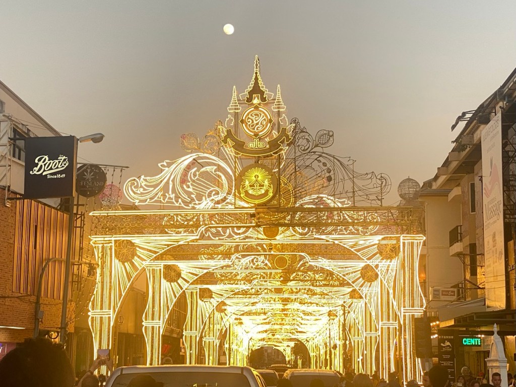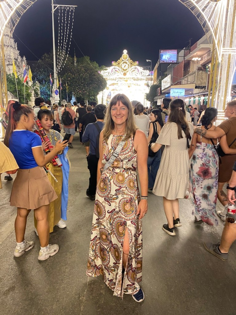 Rechtzeitig zum Höhepunkt des Lichterfests sind wir zurück in Chiang Mai. Frisch geduscht und schick gemacht geht’s los.