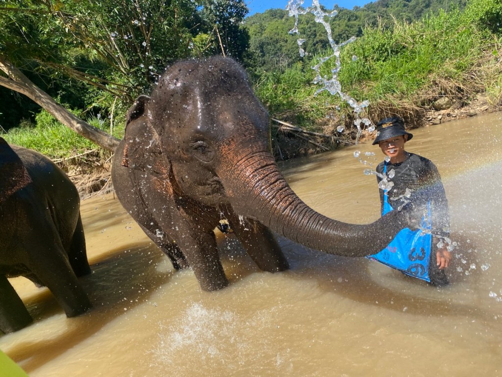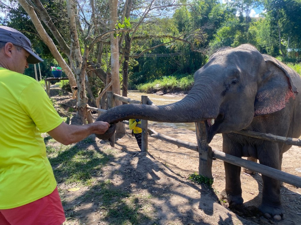 Wenn ich schon in Nord-Thailand bin, will ich unbedingt einmal ein Elefantencamp besuchen. Nach COVID-19 und jüngst nach der Flutkatastrophe wurden einige Camps geschlossen bzw. müssen sehr ums Überleben kämpfen. Wir suchen uns die Organisation „Pon Elephant Thailand“ aus und buchen eine Tour in einer kleinen Gruppe.