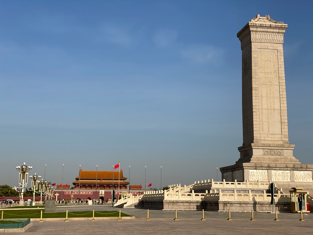 Wir umlaufen die große Säule neben dem Mao Mausoleum, welches heute (Montag) wie auch das National Museum of China und der Himmelstempel geschlossen hat.
