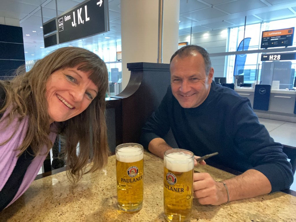 Nur leider kann er kein Bier zapfen 🍺. Da dies zum Urlaubsauftakt obligatorisch ist, kommen wir mit ihm heute nicht ins Geschäft! Aber es gibt ja zum Glück auch noch ganz normale Läden, die uns ein Helles verkaufen – jetzt kann der Urlaub beginnen!!! 🏝️☀️✈️