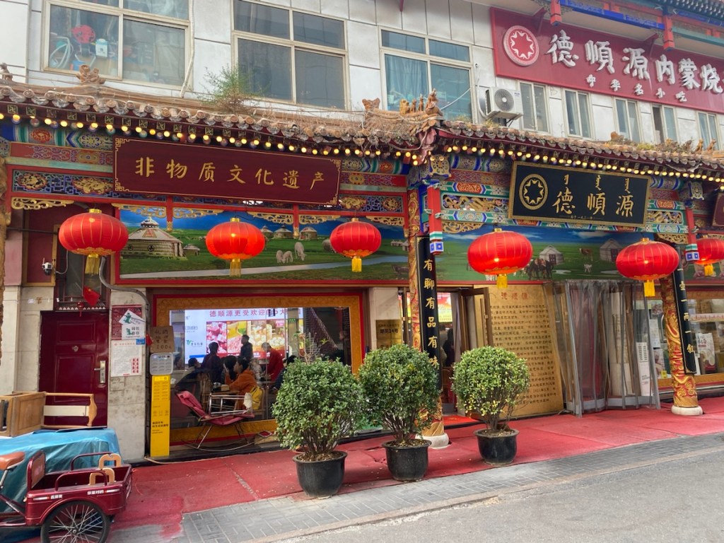 In dem Lokal, das wir an unserem ersten Tag in Peking bereits entdeckt haben, essen wir wieder leckere Teigtaschen und wärmen uns mit einem Tässchen (kostenlosem) Tee auf.