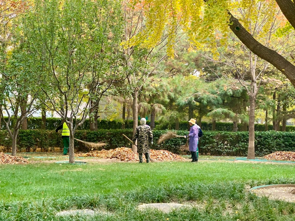 Zu meiner Überraschung stelle ich fest, dass der Laubbläser hier in Peking noch keinen Einzug gehalten hat! Lobenswert!