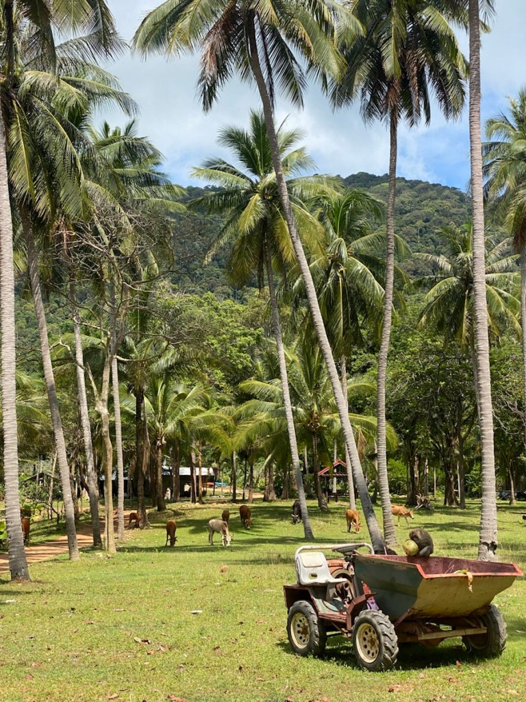 Im Restaurant unserer Unterkunft essen wir als Nachmittagssnack einen Papayasalat. Ich habe selten etwas so leckeres gegessen – eine Geschmacksexplosion! Und das Hühnchen, das in Pandan-Blättern gebacken ist, ist ebenfalls der Hammer!