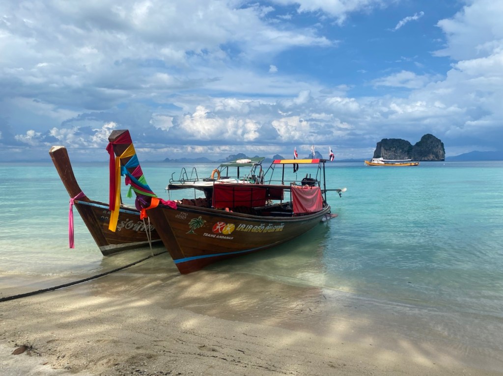 Auf geht’s zur letzten Etappe – wir fahren noch einmal nach Koh Ngai, wo wir schwimmen können oder ein Bier trinken. Wir entscheiden uns für letzteres 🍻.